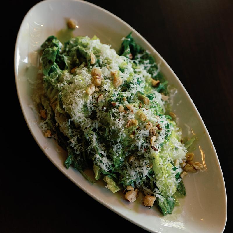 little gems, green goddess, arugula, aged manchego, hazelnuts, chive oil • add house bacon +4, grilled chicken +11, grilled salmon +15, grilled lobster tail +31