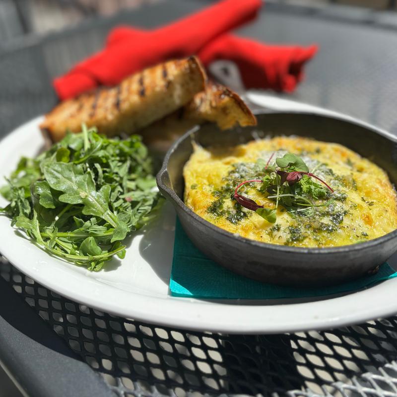 roasted hearts, garlic, white wine, fontina, gruyere, grilled baguette