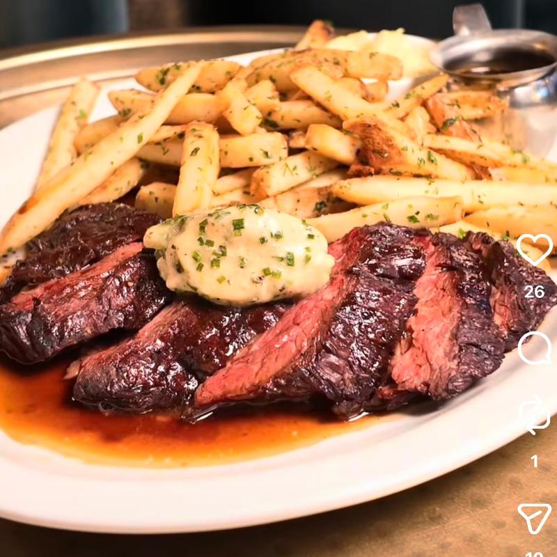 seven ounce american wagyu bavette, garlic aioli, demi, mezcal butter, truffle fries • add grilled lobster tail +23