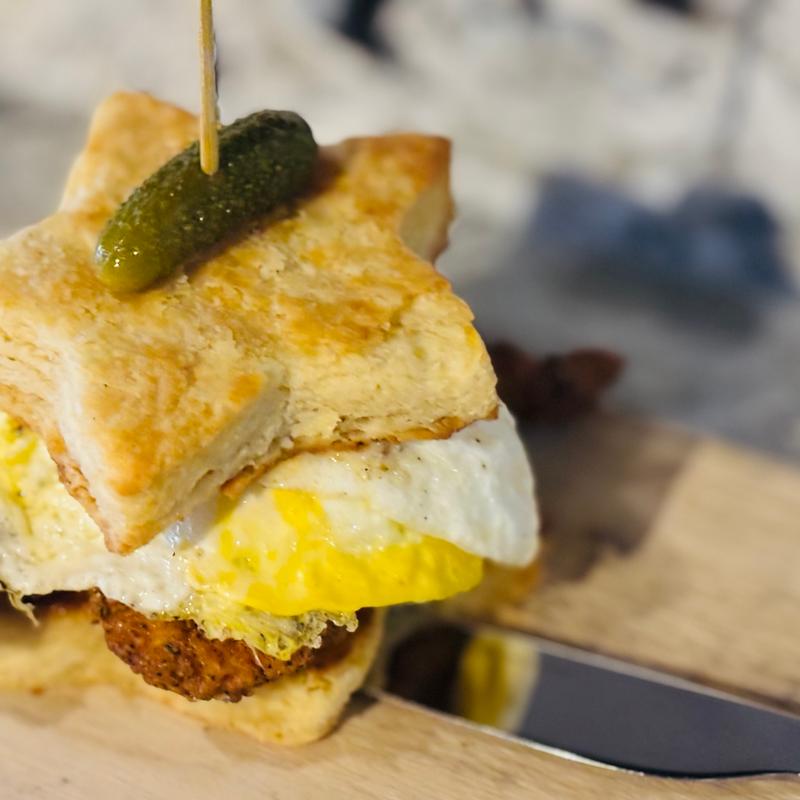 choice of fried chicken, house ham, bacon, or sausage, pimento cheese