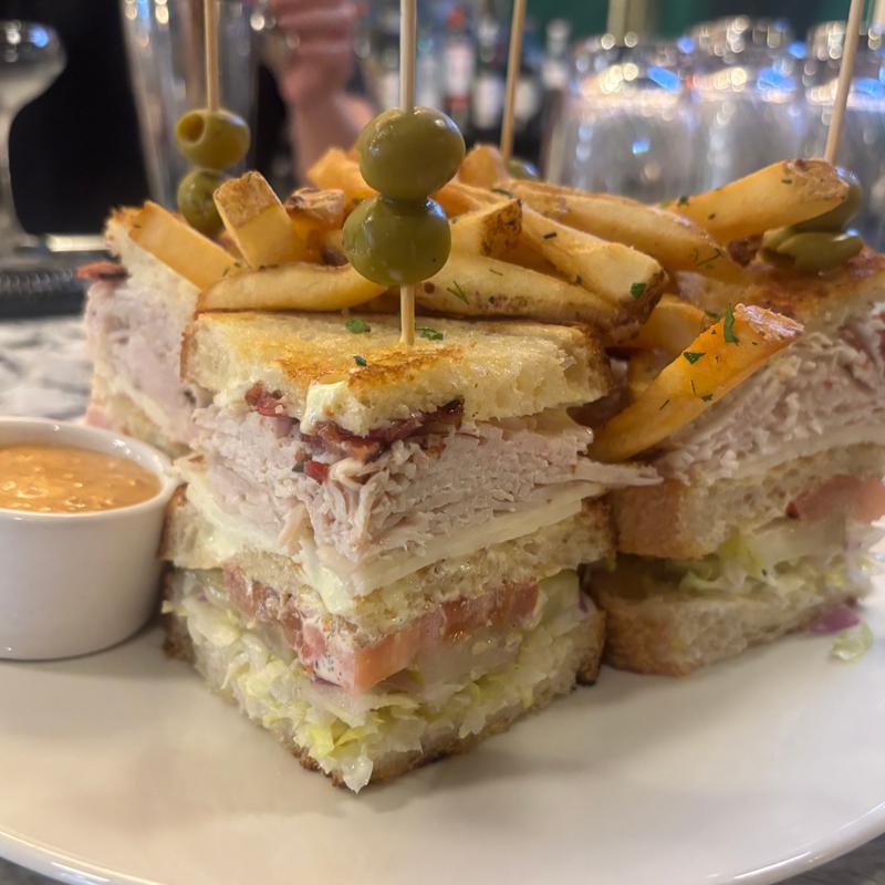 ACME sourdough, roasted turkey, house bacon, fontina, lettuce, tomato, onion, pickle, truffle fries